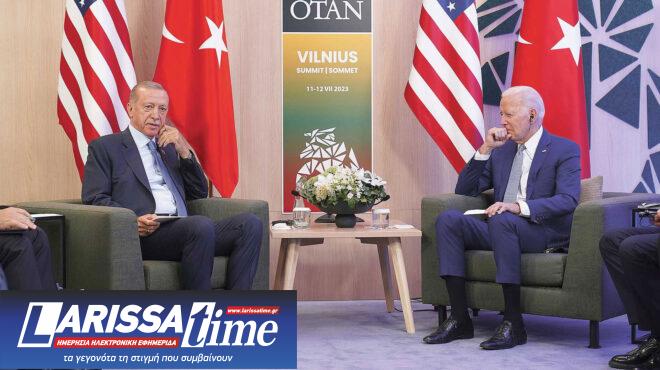 Ο Ρετζέπ Ταγίπ Ερντογάν στη συνέντευξη Τύπου στη σύνοδο κορυφής του ΝΑΤΟ, τον Ιούλιο, είχε αναφερθεί σε διαφορές για τα F-16 και είχε τονίσει ότι «για το ζήτημα των F-16 μίλησα με τον κ. Μπάιντεν και μου είπε πως “αν συμβαίνει αυτό, εγώ θα λύσω αυτό το θέμα”. Πριν από την αναχώρησή του το υπενθύμισα αυτό το ζήτημα και μου είπε πως θα το λύσει εντός 3-4 εβδομάδων. Μεταξύ μας υπήρξαν και διάφορες παρατηρήσεις. Το ζήτημα των ανταλλακτικών είναι από αυτά που συζητάμε».