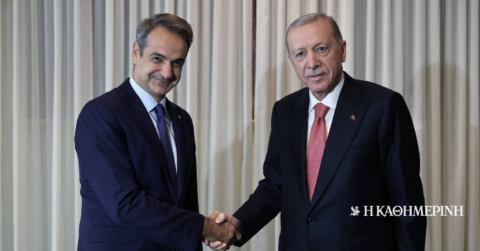 Συγκεκριμένα, στην ανακοίνωση που έδωσε στη δημοσιότητα έπειτα από τη συνάντηση των κ.κ. Κυρ. Μητσοτάκη και Ρ.Τ. Ερντογάν, η διεύθυνση επικοινωνίας της τουρκικής προεδρίας σημειώνει: