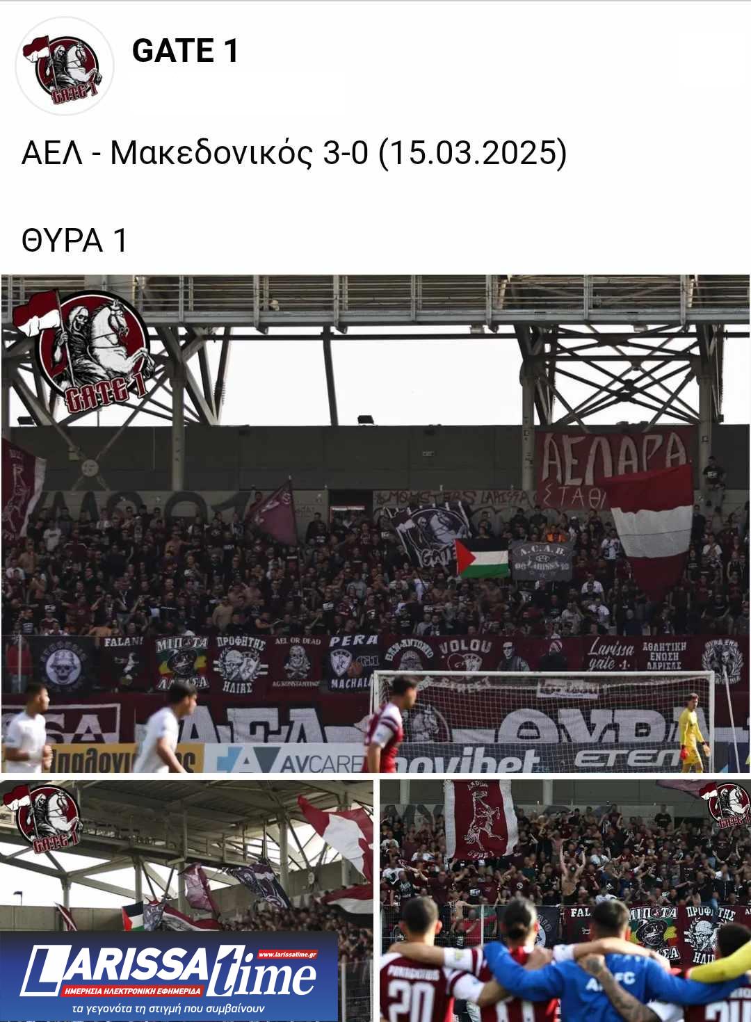 Με αφορμή την εντός έδρας αναμέτρηση των Play Off για την Superleague 2 της ΑΕΛ με το Μακεδονικό που έγινε το Σάββατο (15/03) στο AEL FC Arena οι οργανωμένοι οπαδοί των «βυσσινί» Θύρα 1 μέσα από τα social media έκαναν την παρακάτω ανάρτηση.