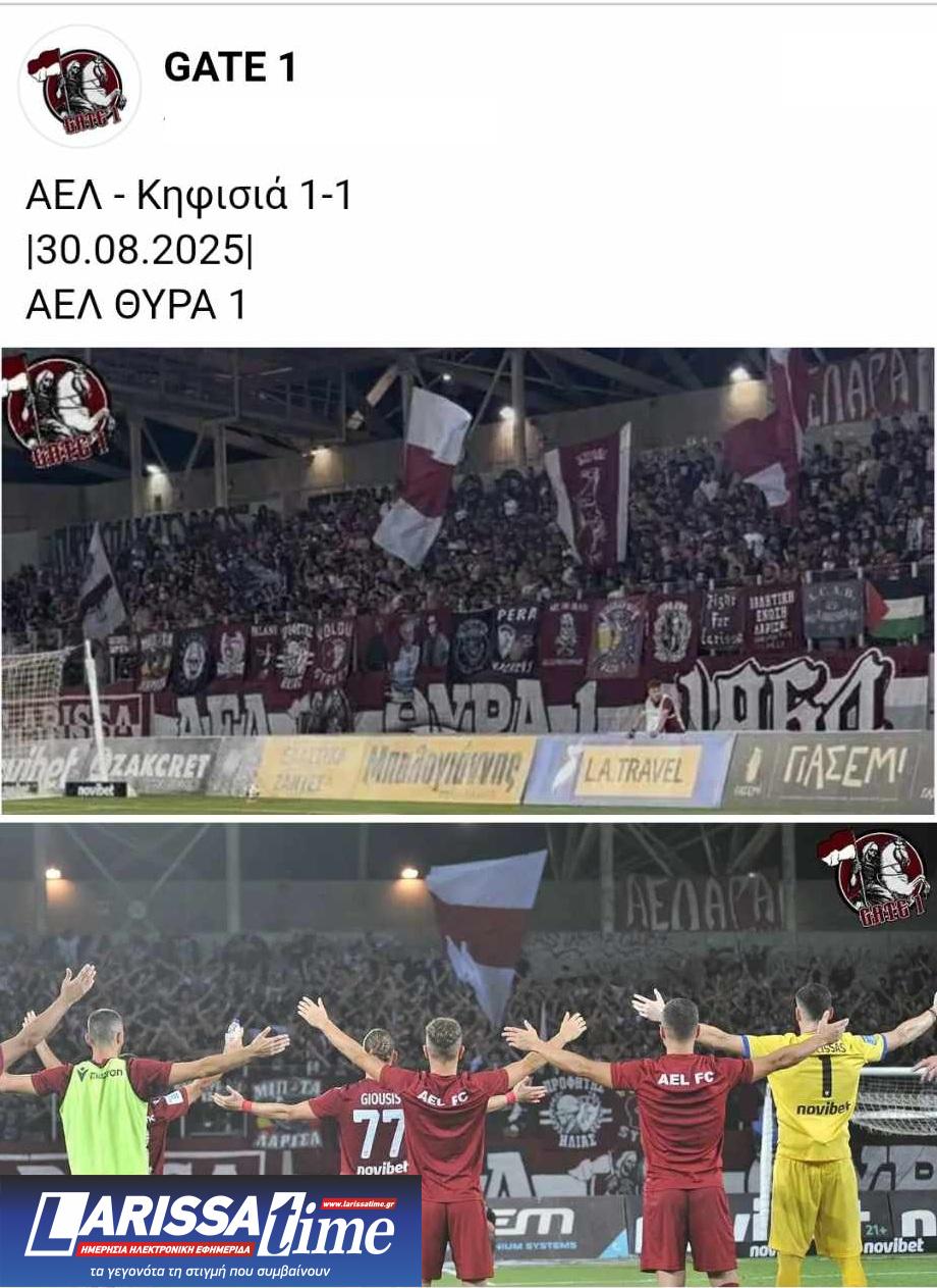 Με αφορμή την εντός έδρας αναμέτρηση της ΑΕΛ με την Κηφισιά, για το πρωτάθλημα της Superleague, που έγινε το Σάββατο (30/08) στο AEL FC Arena οι οργανωμένοι οπαδοί των «βυσσινί» Θύρα 1 μέσα από τα social media έκαναν την παρακάτω ανάρτηση μαζί με φωτογραφίες.