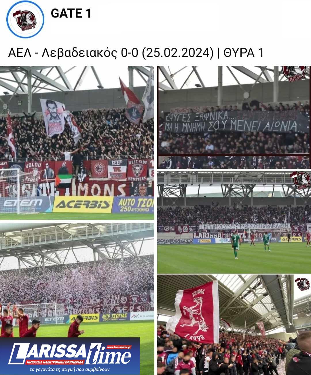 Με αφορμή την εντός έδρας αναμέτρηση για την Superleague 2 της ΑΕΛ με το Λεβαδειακό που έγινε την Κυριακή (25/02) στο AEL FC Arena οι οργανωμένοι οπαδοί των «βυσσινί» Θύρα 1 μέσα από τα social media έκαναν την παρακάτω ανάρτηση μαζί με φωτογραφίες.