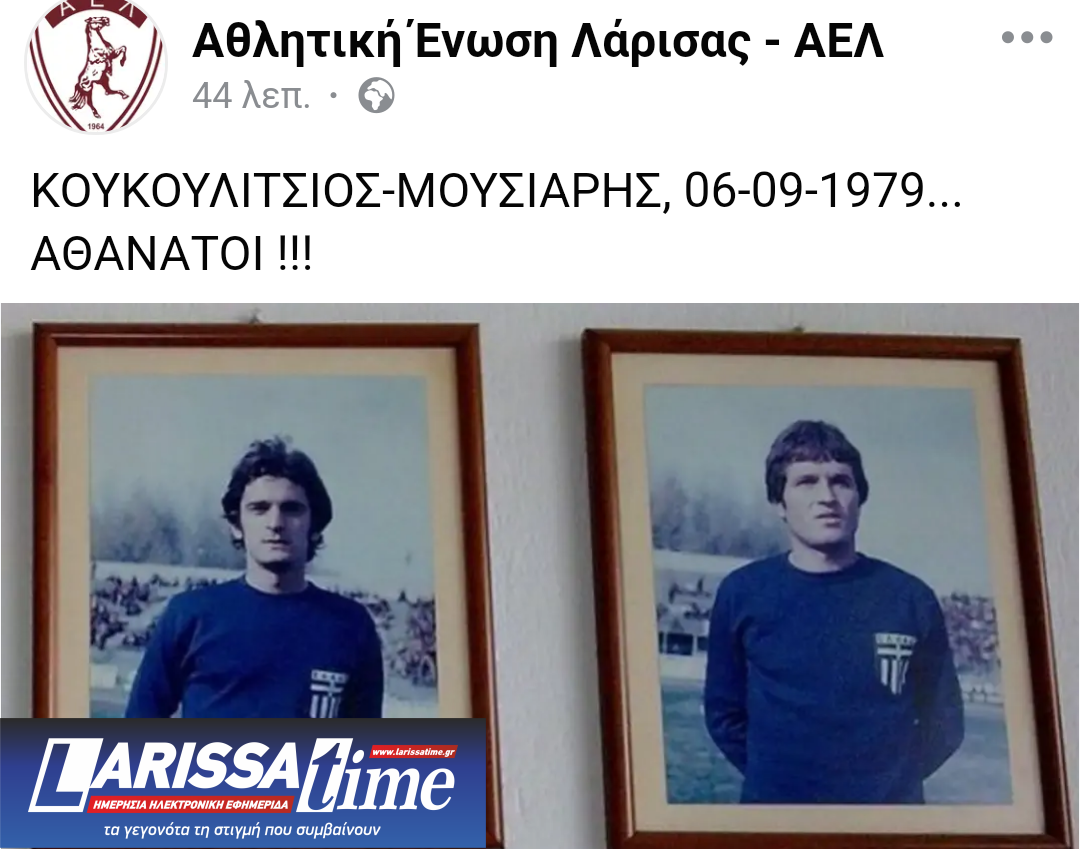 Η Ερασιτεχνική ΑΕΛ με αφορμή την συμπλήρωση 45 χρόνων από το θάνατο του Δημήτρη Κουκουλίτσου και του Δημήτρη Μουσιάρη ανέβασε μία εικόνα στην σελίδα κοινωνικής δικτύωσης με την παρακάτω ανάρτηση.