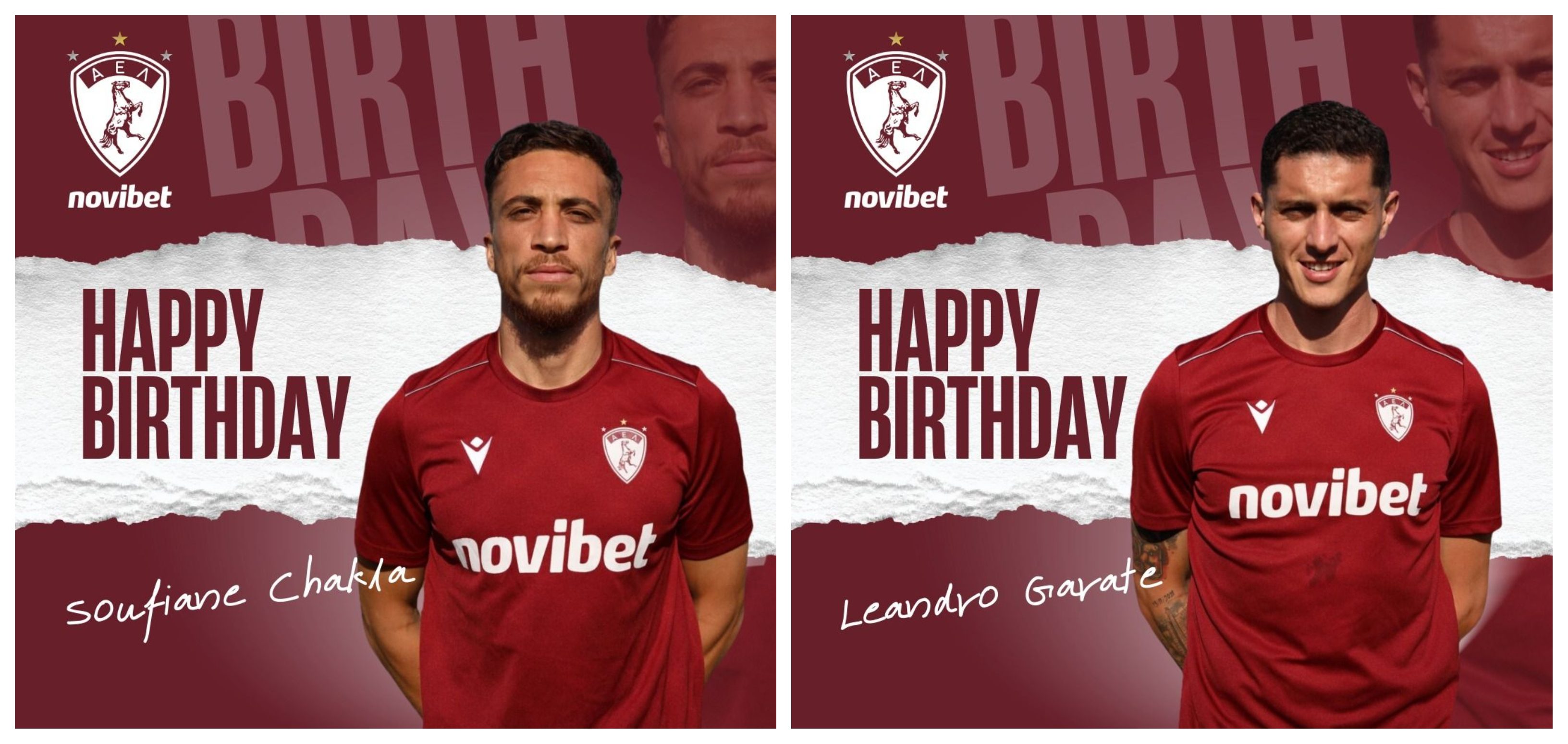 Η ΠΑΕ ΑΕΛ με αναρτήσεις της στα μέσα κοινωνικής δικτύωσης, με δύο εικόνες έστειλε τις ευχές της στους ποδοσφαιριστές της, Σοφιάν Τσάκλα και Λεάντρο Γκαράτε, που έχουν σήμερα Τρίτη 2 Σεπτεμβρίου 2025 τα γενέθλιά τους.