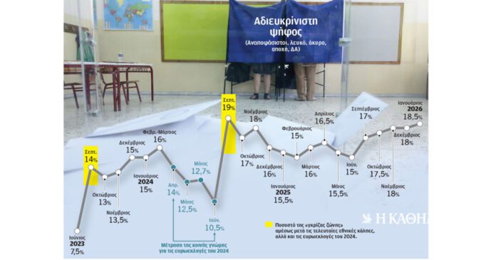 Οι μετρήσεις των τελευταίων μηνών δείχνουν ότι η «γκρίζα ζώνη» παγιώνεται σε αυτά τα επίπεδα, αντικειμενικά αρκετά υψηλά. Σχεδόν ένας στους πέντε ψηφοφόρους βρίσκεται σε αυτή την ομάδα, κάτι που συνεπάγεται ότι η απόφασή τους να μετακινηθούν προς κάποιο κόμμα μπορεί να μεταβάλλει σημαντικά τον πολιτικό χάρτη. «Είναι όσοι παραμένουν σε επιφυλακή, περιμένουν και δεν κάνουν το επόμενο βήμα, δεν δείχνουν έτοιμοι να γίνουν δυνητικοί ψηφοφόροι», προσθέτει ο κ. Αράπογλου.