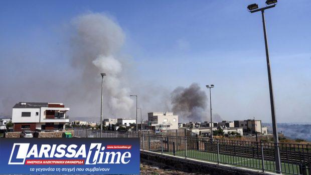 Ισραηλινός πυροσβέστης κοντά σε καπνό και φωτιά μετά την εκτόξευση πυραύλων προς το Ισραήλ από τον Λίβανο (Πηγή: REUTERS/Gil Eliyahu)