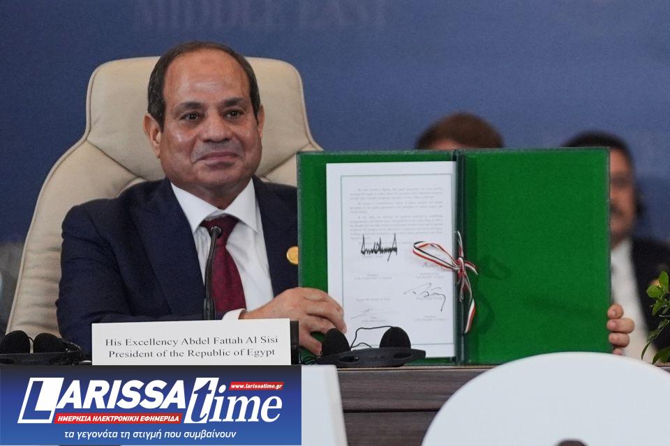 Στη Σύνοδο για τη Γάζα στο Σαρμ ελ Σέιχ της Αιγύπτου, ο Τραμπ υπέγραψε, μαζί με τους ηγέτες της Αιγύπτου, του Κατάρ και της Τουρκίας, τη διακήρυξη «Ειρήνη 2025», με στόχο την παγίωση της κατάπαυσης του πυρός και την έναρξη μιας νέας περιόδου σταθερότητας στη Γάζα.
