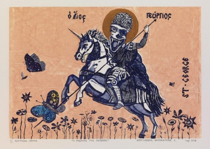 Ο δεύτερος πίνακας που μπήκε στο στόχαστρο του κ. Παπαδόπουλου και ανήκει στον ίδιο καλλιτέχνη, είναι αυτός που απεικονίζει τον «Άγιο Γεώργιο» και φέρει τον τίτλο «Ο Χασάπης της Λεωφόρου».