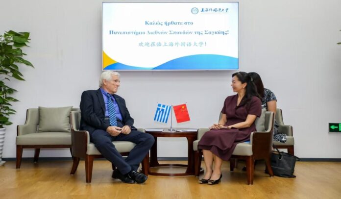 Το Πανεπιστήμιο Διεθνών Σπουδών της Σαγκάης, με διεθνή φήμη και μακρά παράδοση στις ανθρωπιστικές επιστήμες, αποτελεί ένα από τα σημαντικότερα πανεπιστήμια γλωσσικών και πολιτιστικών σπουδών της Ασίας και διακρίνεται για το διεπιστημονικό του σύστημα σπουδών. Ανάμεσα στις πενήντα τέσσερις γλώσσες που διδάσκονται, το Τμήμα Νεοελληνικής Γλώσσας – το πρώτο και παλαιότερο στην Κίνα – έχει συμβάλει επί πέντε δεκαετίες στις πολιτιστικές και εμπορικές ανταλλαγές μεταξύ Κίνας και Ελλάδας, εκπαιδεύοντας γενιές Κινέζων νεοελληνιστών.