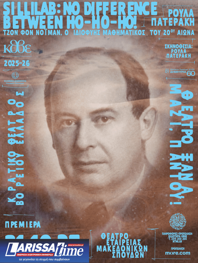 Η Ρούλα Πατεράκη, η μεγάλη κυρία του ελληνικού θέατρου, επιστρέφει στο ΚΘΒΕ υπογράφοντας τo κείμενο, τη σκηνοθεσία και τη χορογραφία της νέας παραγωγής με τίτλο «SillilabNoDifferenceBetweenHoHoHo!!!». Το έργο είναι αφιερωμένο στον κορυφαίο μαθηματικό του 20ού αιώνα, Τζον φον Νόιμαν και θα παρουσιαστεί στο Θέατρο Εταιρείας Μακεδονικών Σπουδών,σε πανελλήνια πρώτη, από την Παρασκευή 31 Οκτωβρίου. Πρόκειται για την επίσημη συμμετοχή του ΚΘΒΕ στα 60α Δημήτρια του Δήμου Θεσσαλονίκης.