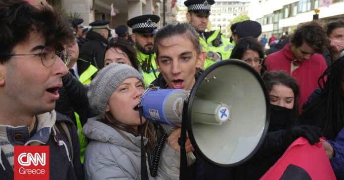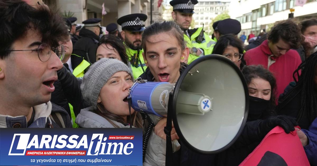 Η ακτιβίστρια για το κλίμα Γκρέτα Τούνμπεργκ συνελήφθη την Τρίτη (23/12) στο κεντρικό Λονδίνο σε διαδήλωση υποστήριξης των απεργών πείνας της οργάνωσης Palestine Action.