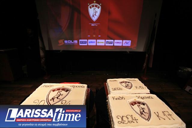 Παρούσα όλη η μεγάλη βυσσινί οικογένεια, διοίκηση, στελέχη προπονητές, ιατρικό team, ποδοσφαιριστές, όλοι οι χορηγοί της ΠΑΕ ΑΕΛ που τιμήθηκαν με βραβεύσεις ξεχωριστά πλαισιωμένοι από τις αρχές της Περιφέρειας και του Δήμου Λαρισαίων, τους εκπροσώπους ΜΜΕ και τις ευλογίες του Σεβασμιωτάτου Μητροπολίτη Λαρίσης & Τυρνάβου Ιερωνύμου, ο οποίος τέλεσε τον αγιασμό και έκοψε τις πίτες με την ευχή και παρότρυνση προς τους ποδοσφαιριστές να δώσουν όλες τις δυνάμεις και το ταλέντο τους ώστε να ζήσει και αυτός μια απονομή τροπαίου με την ΑΕΛ έστω αρχικά με την άνοδό της.