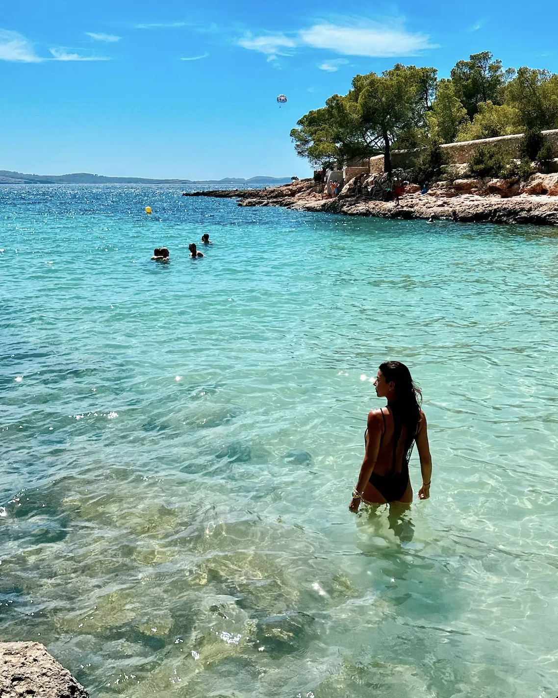 Κατά τη διαμονή της στην Ίμπιζα, η Μαρίνα Βερνίκου απολάμβανε τις περιηγήσεις στο νησί, κολυμπούσε στις γαλάζιες παραλίες και διασκέδαζε με φίλες της σε ένα από τα δημοφιλέστερα beach bars.