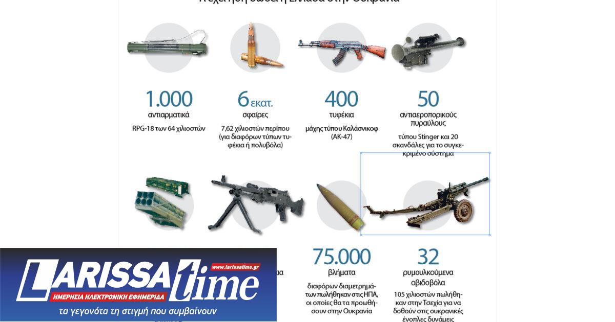 • Τελευταία πώληση ήταν εκείνη 32 ρυμουλκούμενων οβιδοβόλων διαμετρήματος 105 χιλιοστών τύπου Μ101Α1 προς την Τσεχία, η οποία τα προωθεί στη συνέχεια στην Ουκρανία. Τα συγκεκριμένα οβιδοβόλα παραχωρήθηκαν από τις ΗΠΑ στις Ενοπλες Δυνάμεις μεταξύ των δεκαετιών του 1950 και του 1960.