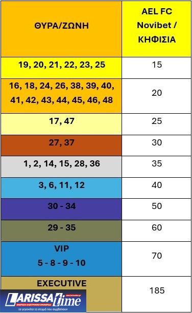 ΟΙ ΤΙΜΕΣ ΤΩΝ ΕΙΣΙΤΗΡΙΩΝ ΑΝΑ ΘΥΡΑ:
