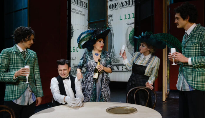 Στην απολαυστική αυτή φάρσα για το χρήμα και τον έρωτα όλοι και όλες αναζητούν διακαώς την περιπέτεια και την εφικτή ευτυχία. Για να την κατακτήσουν όμως θα πρέπει να περάσουν από μια σειρά κωμικοτραγικών εμποδίων: να κρυφτούν, να μεταμφιεστούν, να συνωμοτήσουν, να αντιμετωπίσουν απρόσμενες καταστάσεις που σε όλες έχει βάλει το χεράκι της η τετραπέρατη Ντόλυ.