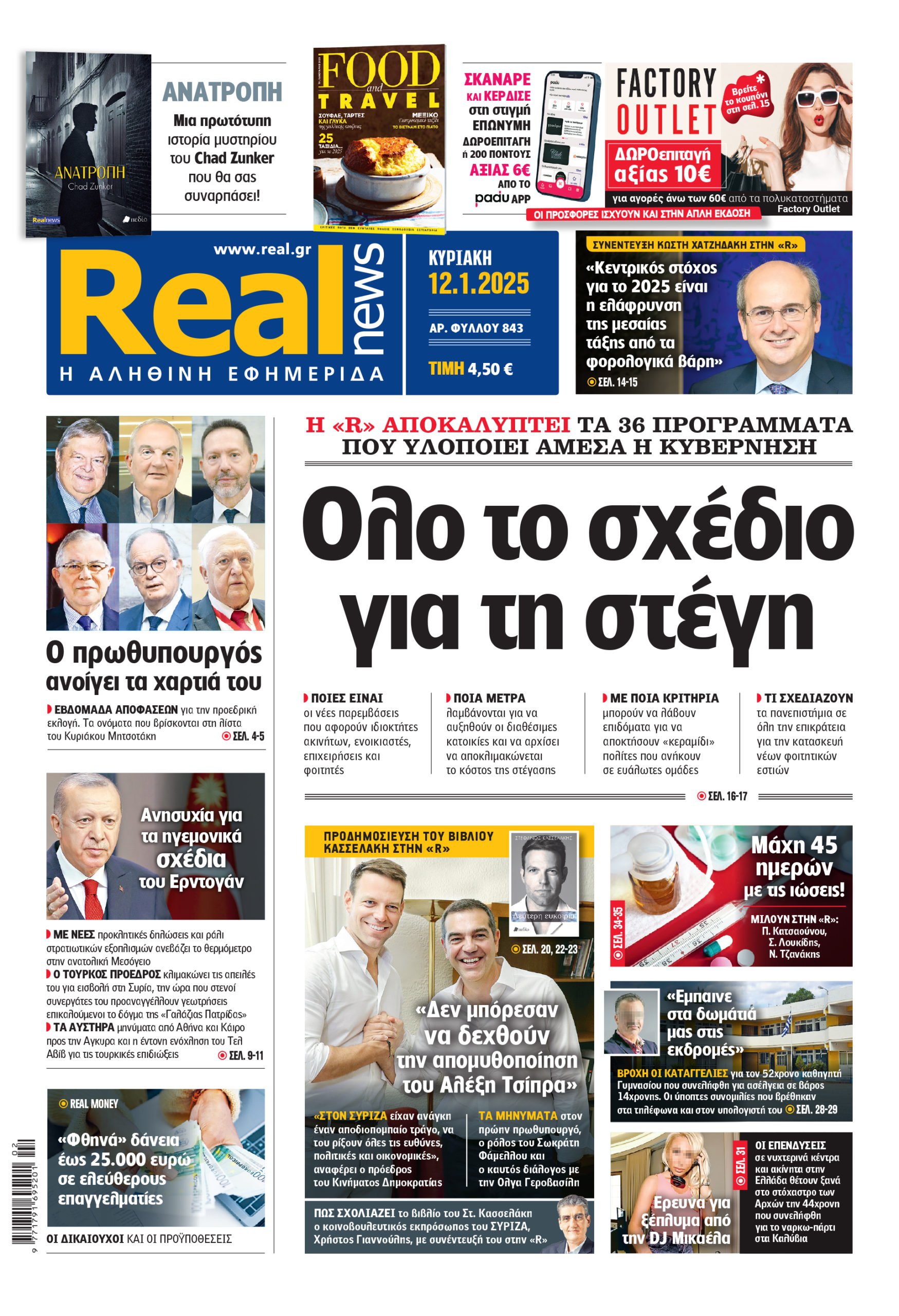 Με τίτλο: «Ολο το σχέδιο για τη στέγη» κυκλοφορεί, αυτήν την Κυριακή, η Realnews