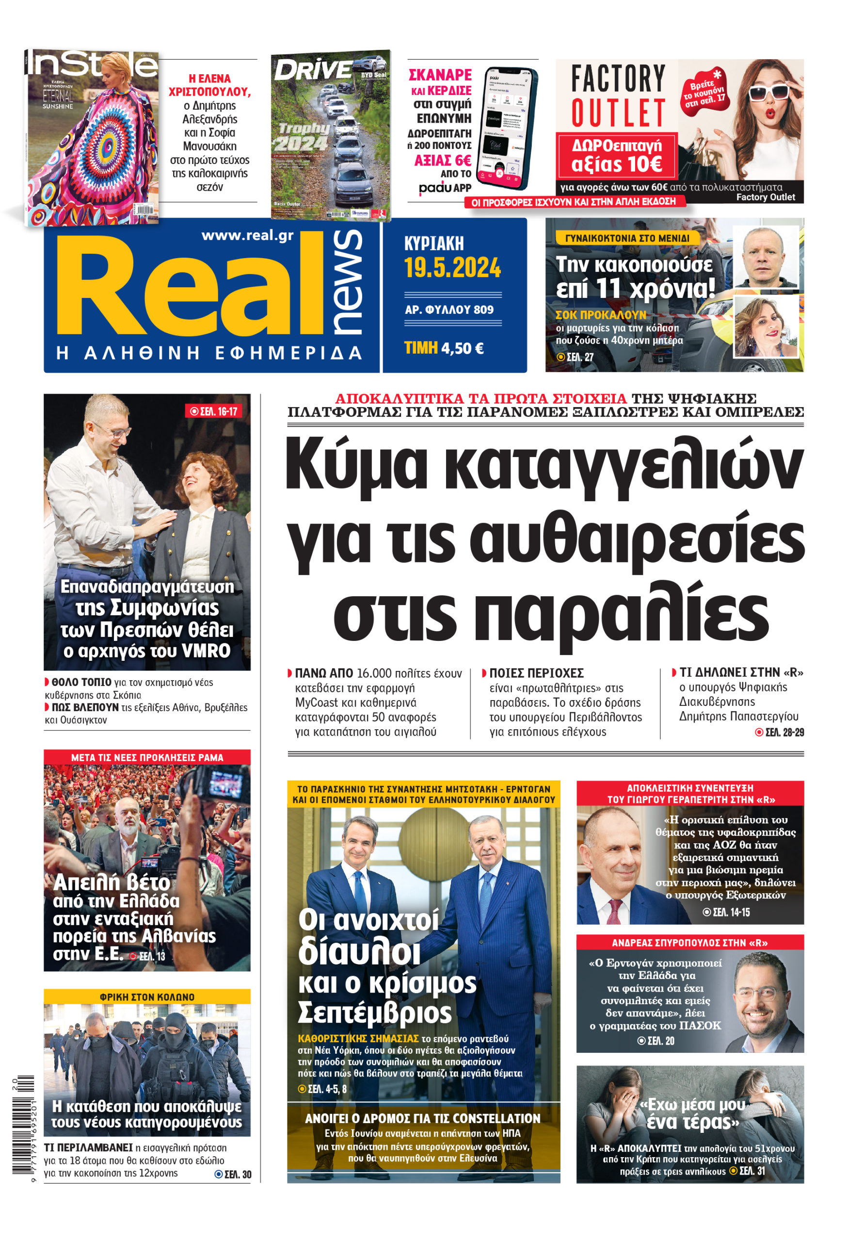 Με τίτλο: «Κύμα καταγγελιών για τις αυθαιρεσίες στις παραλίες» κυκλοφορεί, αυτήν την Κυριακή, η Realnews.