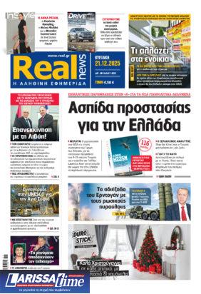 Με τίτλο: «Ασπίδα προστασίας για την Ελλάδα» κυκλοφορεί, αυτήν την Κυριακή, η Realnews. Σημαντικές παρεμβάσεις στην «R» για τα νέα γεωπολιτικά δεδομένα. Αποκλειστικά ρεπορτάζ και αναλύσεις στις 116 σελίδες του περιοδικού «GEOPOLITICS».