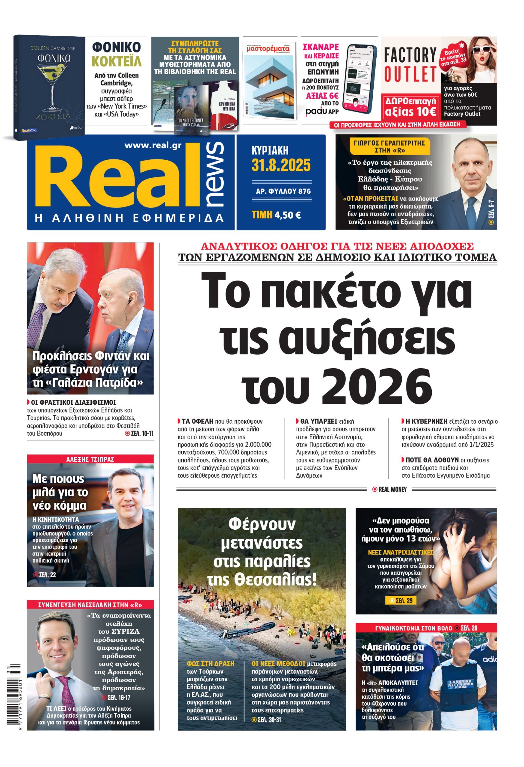 Με τίτλο: «Το πακέτο για τις αυξήσεις του 2026» κυκλοφορεί, αυτήν την Κυριακή, η Realnews.
