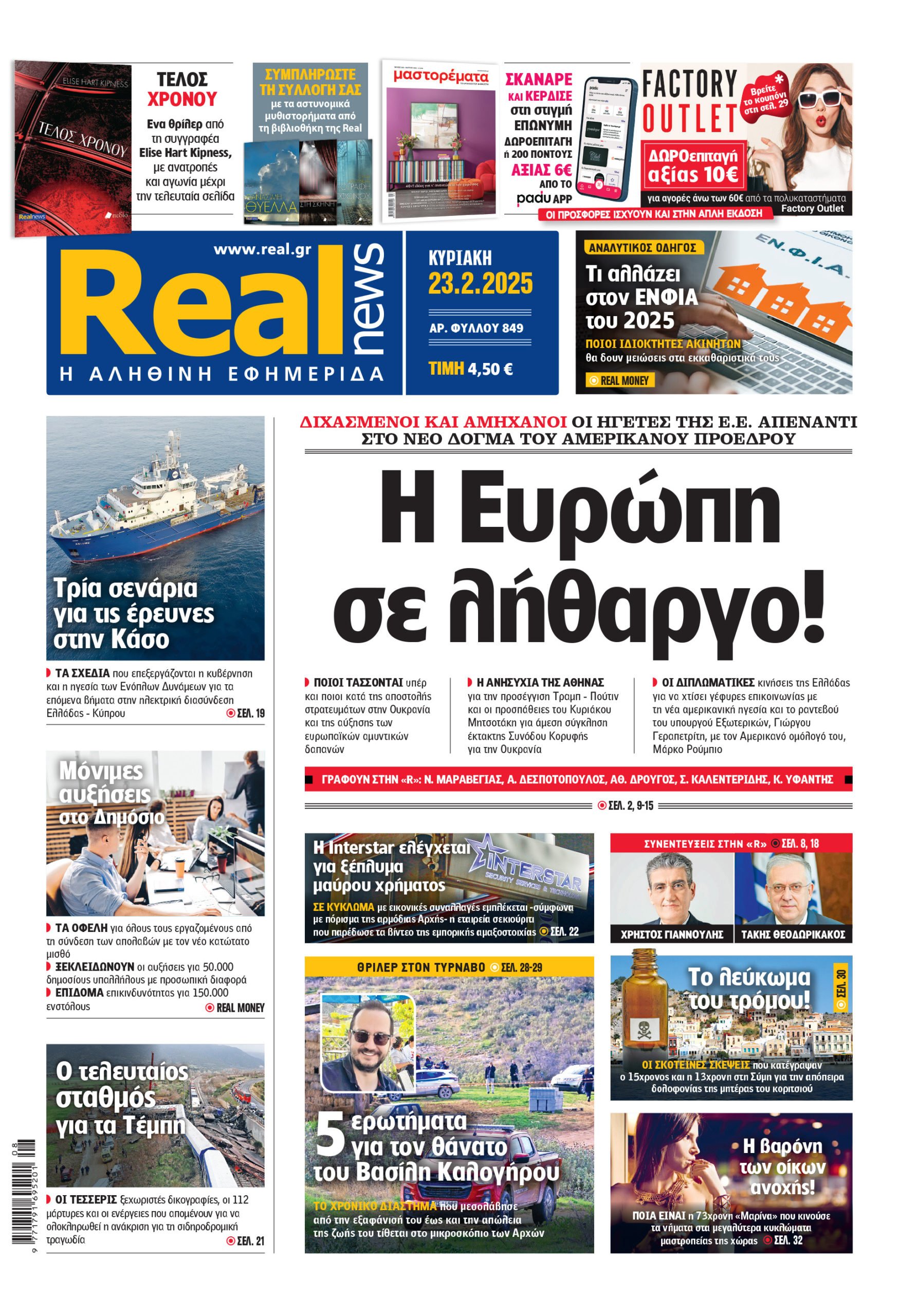 Με τίτλο: «Η Ευρώπη σε λήθαργο!» κυκλοφορεί, αυτήν την Κυριακή, η Realnews.