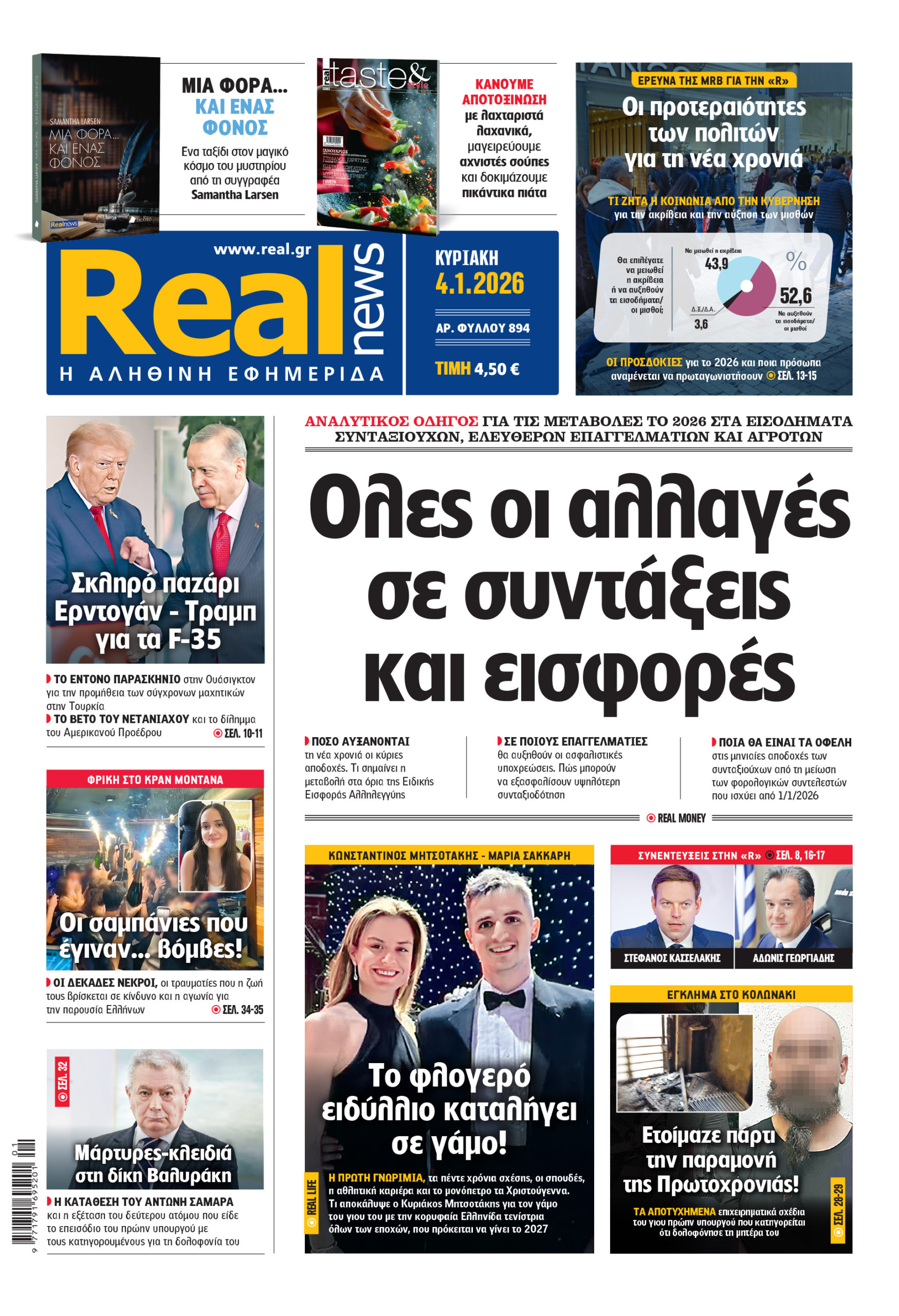 Με τίτλο: «Ολες οι αλλαγές σε συντάξεις και εισφορές» κυκλοφορεί, αυτήν την Κυριακή, η Realnews.