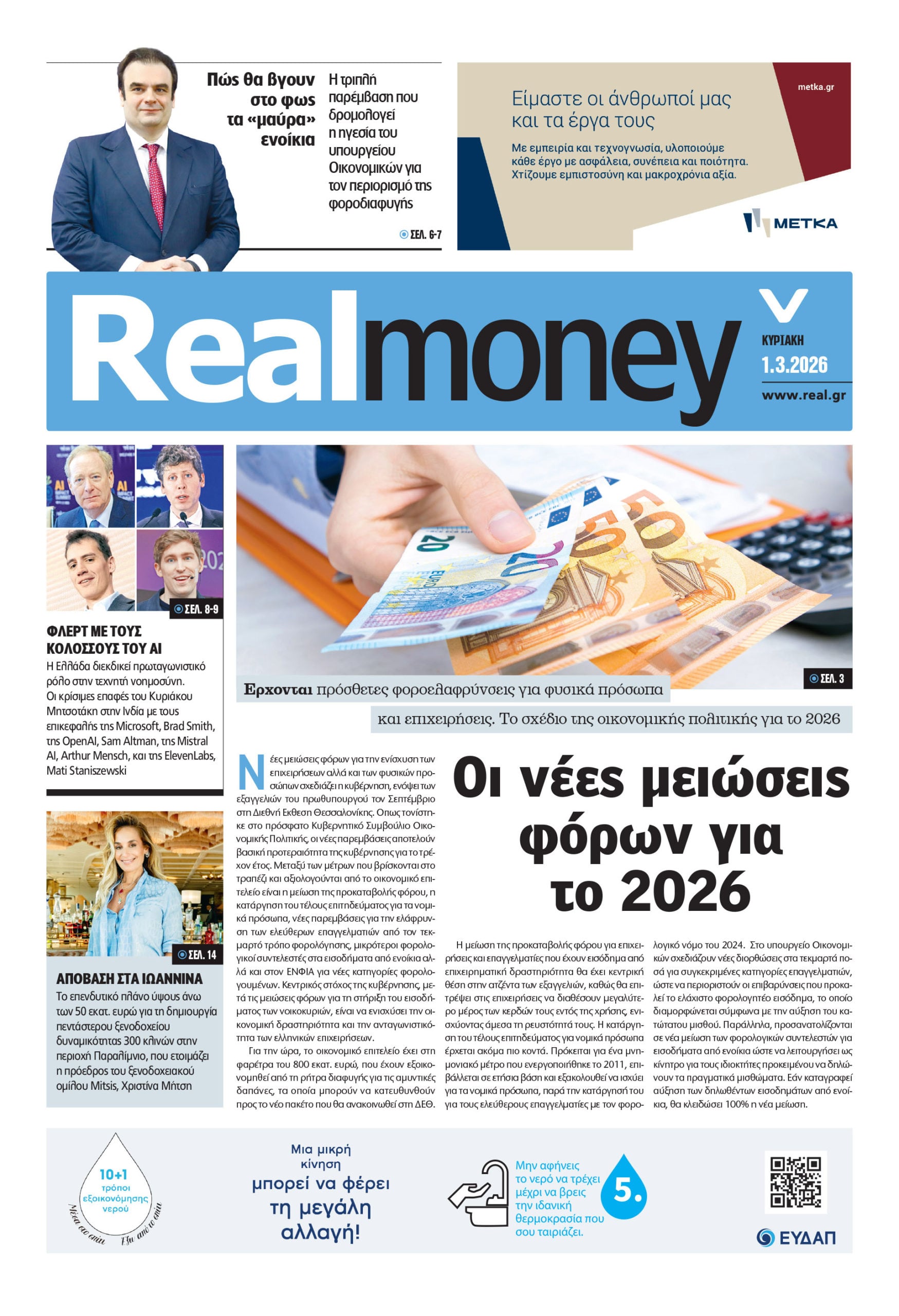– Οι νέες μειώσεις φόρων για το 2026. Έρχονται πρόσθετες φοροελαφρύνσεις για φυσικά πρόσωπα και επιχειρήσεις. Ανοιχτό το ενδεχόμενο μείωσης του φορολογικού συντελεστή των εταιρειών στο 20% από 22%. Στο επίκεντρο θα βρεθούν οι φόροι για εισοδήματα από ενοίκια αλλά και ο ΕΝΦΙΑ. Ποιες αλλαγές θα γίνουν στο τεκμαρτό εισόδημα των ελεύθερων επαγγελματιών.