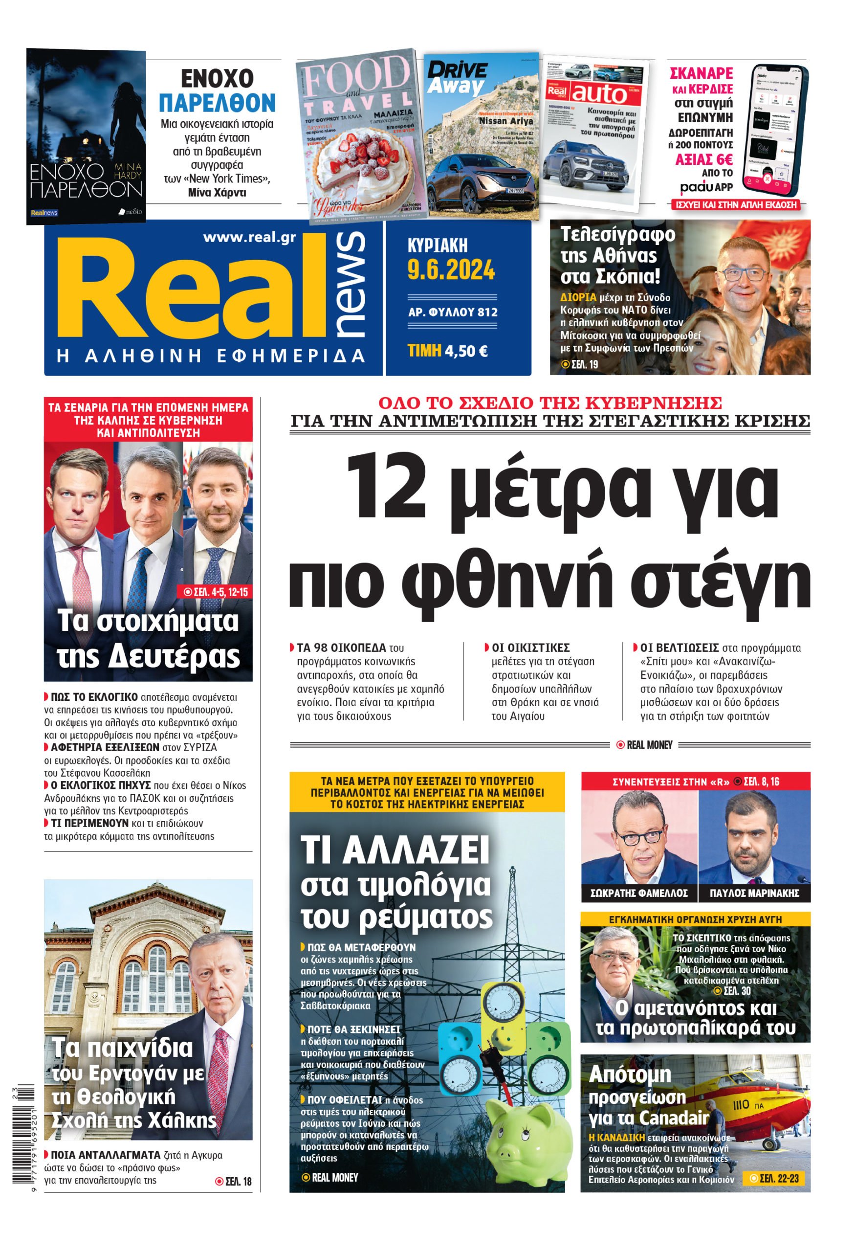 Με τίτλο: «12 μέτρα για πιο φθηνή στέγη» κυκλοφορεί, αυτήν την Κυριακή, η Realnews.