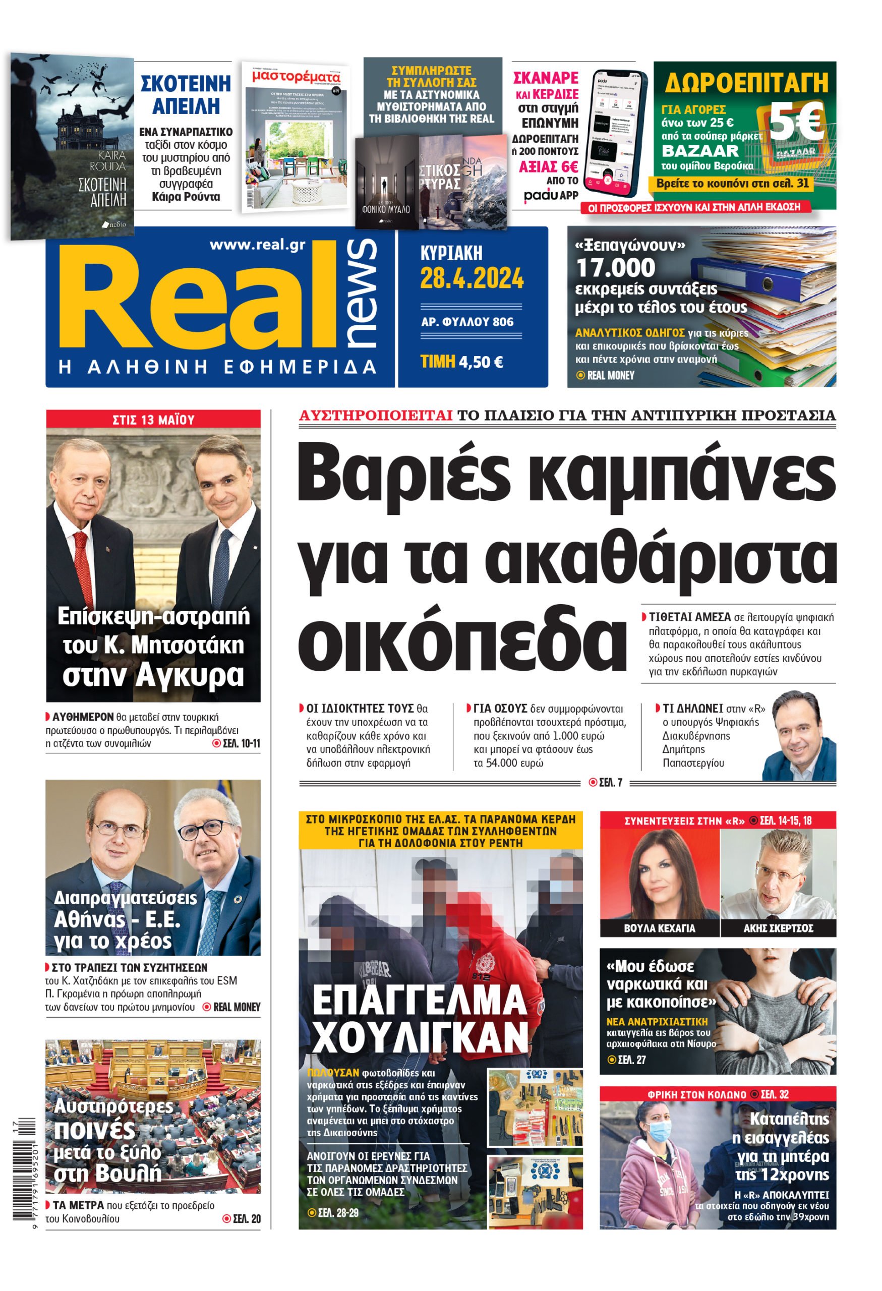 Με τίτλο: «Βαριές καμπάνες για τα ακαθάριστα οικόπεδα» κυκλοφορεί, αυτήν την Κυριακή, η Realnews.