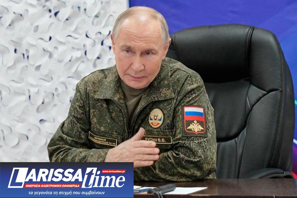 Ο Ρώσος Πρόεδρος Βλαντιμίρ Πούτιν με στρατιωτική περιβολή σε γραφείο διοίκησης του Ρωσικού Στρατού