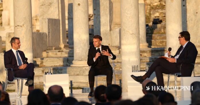 Σε μια κρίσιμη και ρευστή γεωπολιτικά εποχή, ο πρόεδρος της Γαλλίας Εμανουέλ Μακρόν και ο πρωθυπουργός της Ελλάδας Κυριάκος Μητσοτάκης θα συζητήσουν σχετικά με τις προκλήσεις που αντιμετωπίζει σήμερα η Ευρώπη και τον δρόμο προς το αύριο. Τη συζήτηση θα συντονίσει ο διευθυντής της εφημερίδας Η Καθημερινή, Αλέξης Παπαχελάς.
