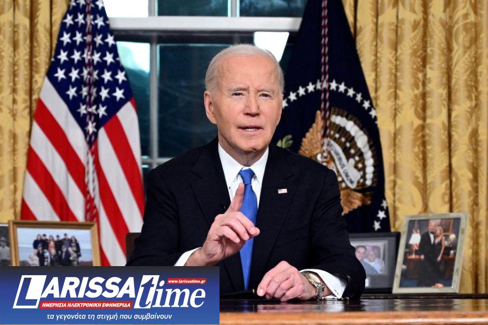 Ο Πρόεδρος των ΗΠΑ Τζο Μπάιντεν κατά την διάρκεια του τελευταίου διαγγέλματός του, στο Οβάλ Γραφείο, την Τετάρτη 15 Ιανουαρίου 2025.