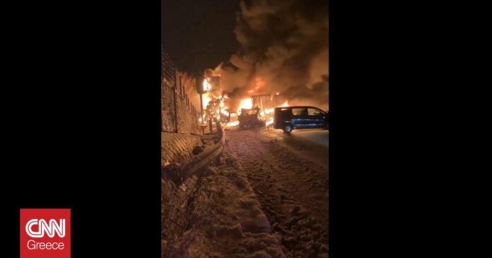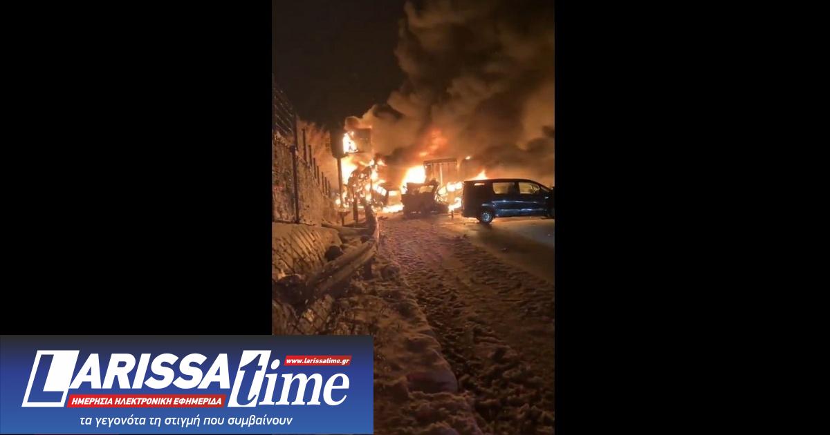 Η αλυσιδωτή σύγκρουση προκάλεσε μια μεγάλη έκρηξη και ακολούθησε φωτιά που επεκτάθηκε σε πολλαπλά οχήματα. Σε βίντεο και φωτογραφίες που κυκλοφόρησαν στα μέσα κοινωνικής δικτύωσης καταγράφονται οι φλόγες να καινε τα κατεστραμένα αυτοκίνητα.