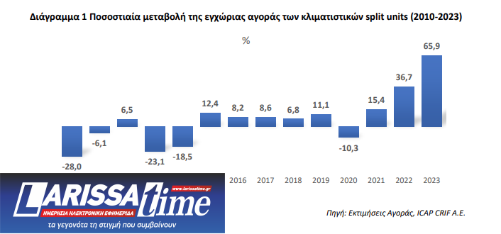 H Σταματίνα Παντελαίου, Διευθύντρια Οικονομικών & Κλαδικών Μελετών της ICAP CRIF αναφέρει ότι οι συνολικές πωλήσεις κλιματιστικών split units(σε τεμάχια) σημείωσαν κατακόρυφη άνοδο κατά 37% το 2022 έναντι του 2021 και κατά 66% το 2023 σε σχέση με το 2022. Η συγκεκριμένη άνοδος οφείλεται στο πρόγραμμα αντικατάστασης κλιματιστικών «Ανακυκλώνω-Αλλάζω Συσκευή», που ξεκίνησε μέσα στο δεύτερο εξάμηνο του 2022.