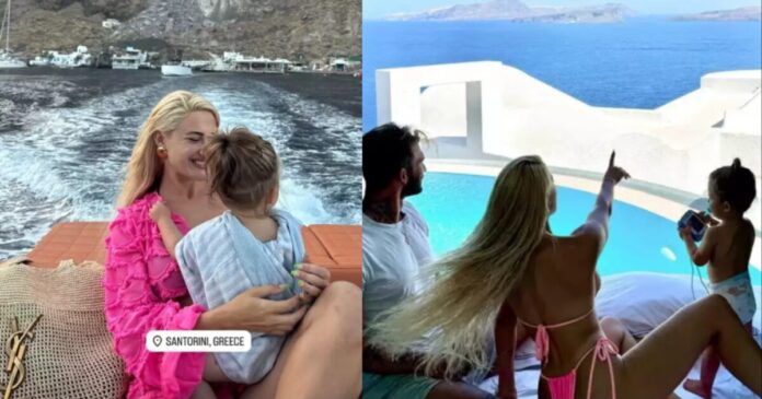 Στη Σαντορίνη ταξίδεψαν για το τριήμερο του Αγίου Πνεύματος, η Ιωάννα Τούνη και ο Δημήτρης Αλεξάνδρου, μαζί με τον μονάκριβο γιο τους.