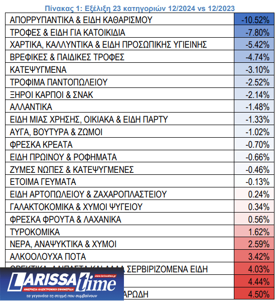 Μεγαλύτερες μειώσεις τιμών καταγράφονται στις κατηγορίες: