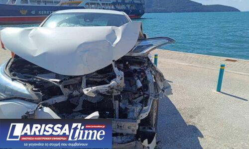 Το υπηρεσιακό όχημα –συμβατικό- σχεδόν διαλύθηκε στο μπροστινό μέρος και ακινητοποιήθηκε όπως φαίνεται και στις φωτογραφίες