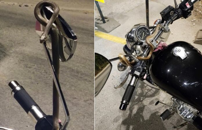 Συγκεκριμένα, ο οδηγός, ενώ επέστρεφε από τη δουλειά του με τη μοτοσικλέτα τύπου Virago, ένιωσε ένα ξαφνικό χτύπημα στο χέρι του. Ενώ βρισκόταν εν κινήσει, αντιλήφθηκε ότι ένα φίδι είχε τυλιχθεί γύρω από το τιμόνι, με το κεφάλι του να ακουμπά το χέρι του, σύμφωνα με το thespro.gr.