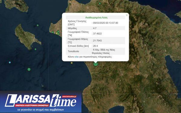 Να σημειωθεί ότι ο σεισμός σημειώθηκε 6 χλμ. βόρεια βορειοδυτικά της Νέας Φιγαλείας Ηλείας, στις 02:13:09.