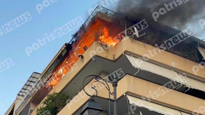 Οι αρχικές πληροφορίες του PatrisNews αναφέρουν πως η φωτιά έχει φτάσει και στον όροφο πάνω από το σπίτι που ξέσπασε η αρχική φωτιά.