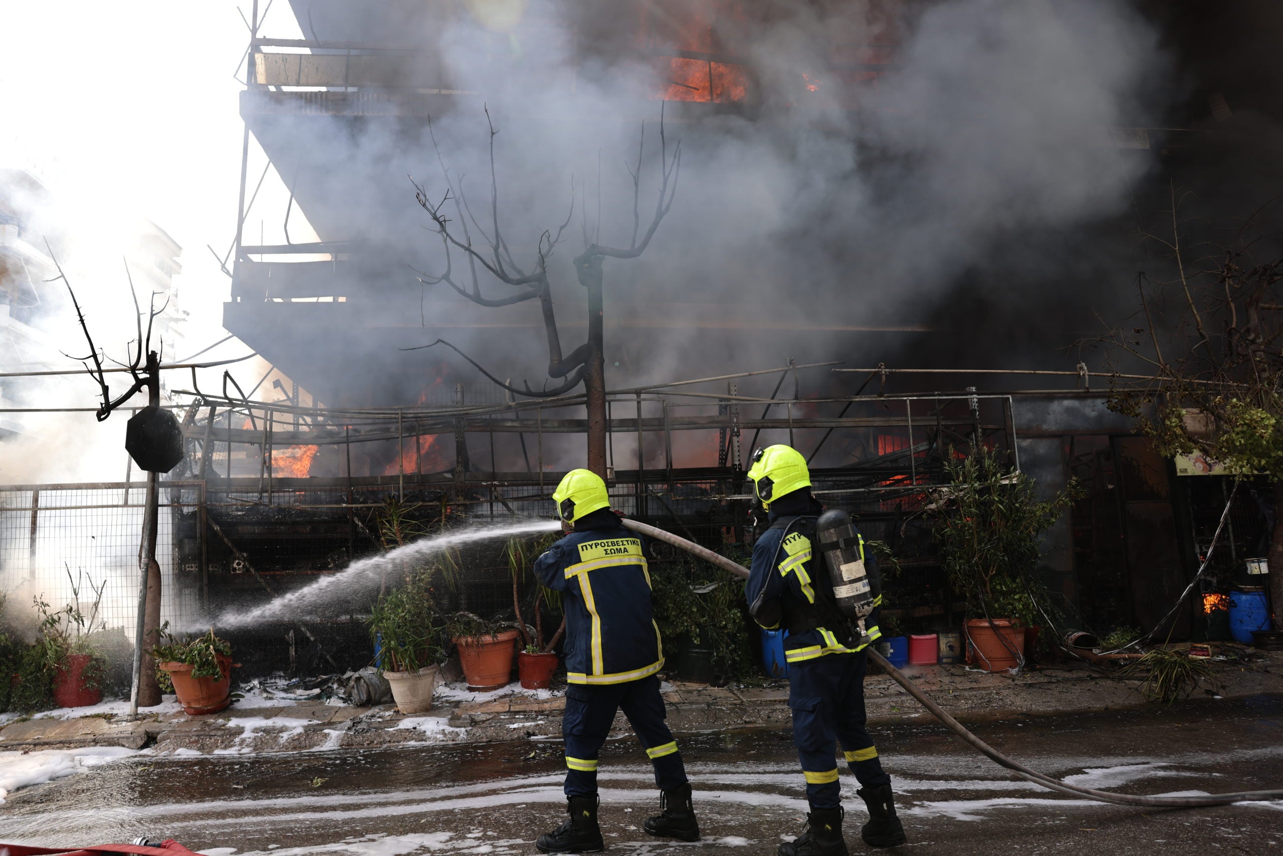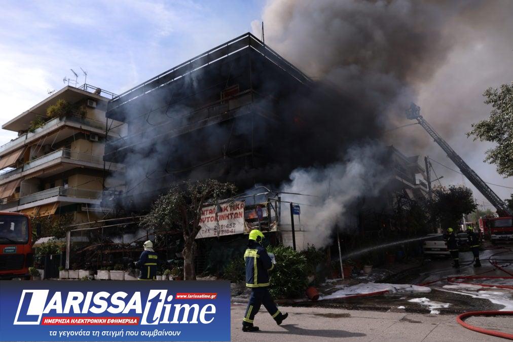 Αυτήν τη στιγμή, στο σημείο επιχειρούν 32 πυροσβέστες με 13 οχήματα και 1 κλιμακοφόρο όχημα. Οι φλόγες έχουν επεκταθεί και σε διαμερίσματα της πολυκατοικίας που βρίσκεται πάνω από το κατάστημα ανταλλακτικών.