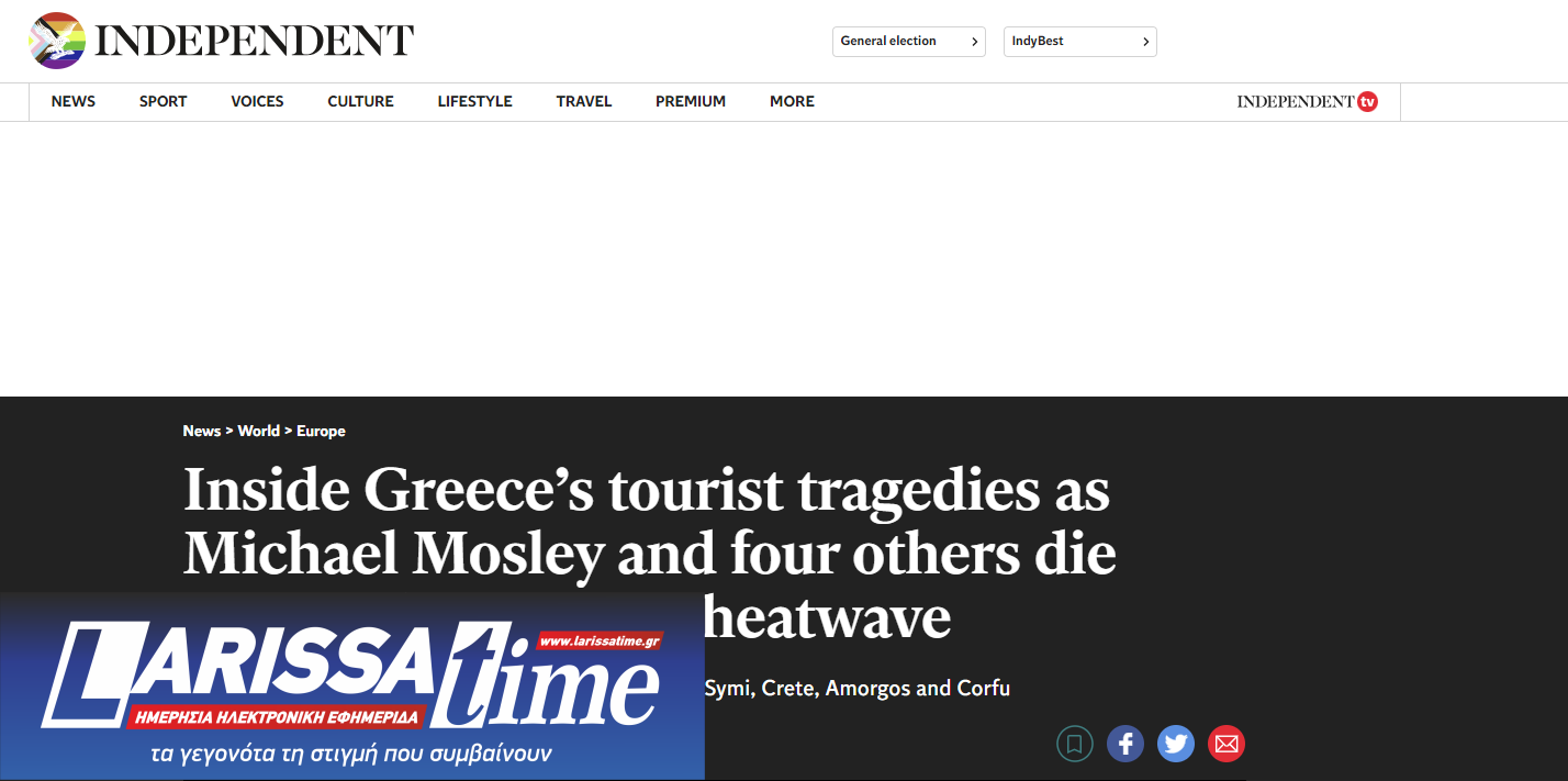 Ο Independent συνδέει του θανάτους των τουριστών με τον καύσωνα που πλήττει τη χώρα μας, ο οποίος όπως λένε «οι μετεωρολόγοι λένε ότι θα μείνει στην ιστορία».