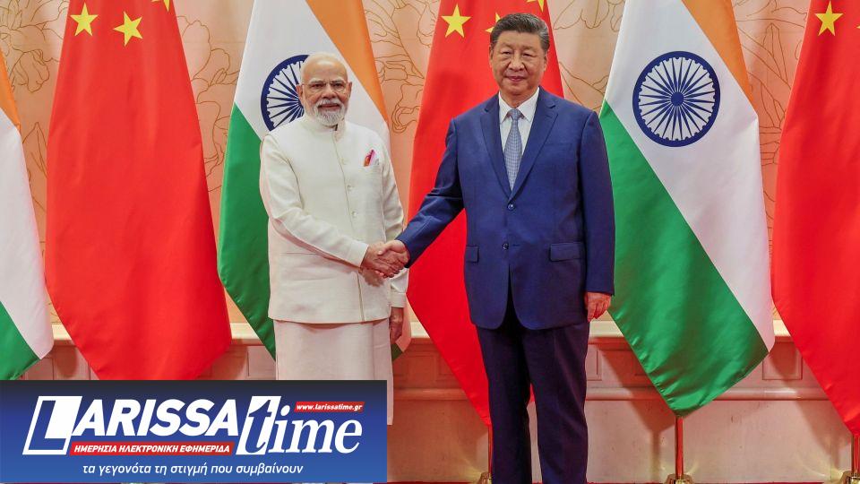 Ο Ινδός Πρωθυπουργός Ναρέντρα Μόντι, και ο Κινέζος Πρόεδρος Σι Τζινπίνγκ ανταλλάσσουν χειραψία πριν από τη συνάντησή τους στο περιθώριο της συνόδου κορυφής του Οργανισμού Συνεργασίας της Σαγκάης (SCO) στην Τιαντζίν της Κίνας, την Κυριακή 31 Αυγούστου 2025.