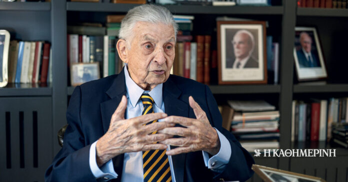 Με προτροπή του Καραμανλή, πολιτεύτηκε για πρώτη φορά με την ΕΡΕ στις εκλογές του 1961. Μετά την πτώση της χούντας, περίμενε, λέει στην «Κ», ότι ο επανακάμψας πρωθυπουργός θα επιχειρούσε να ιδρύσει νέο κόμμα. Σήμερα θυμάται τι είπε όταν διάβασε για πρώτη φορά την ιδρυτική διακήρυξη της ΝΔ και κάνει τον απολογισμό της πορείας που ακολούθησε το κόμμα, στου οποίου τη γέννηση ήταν παρών.