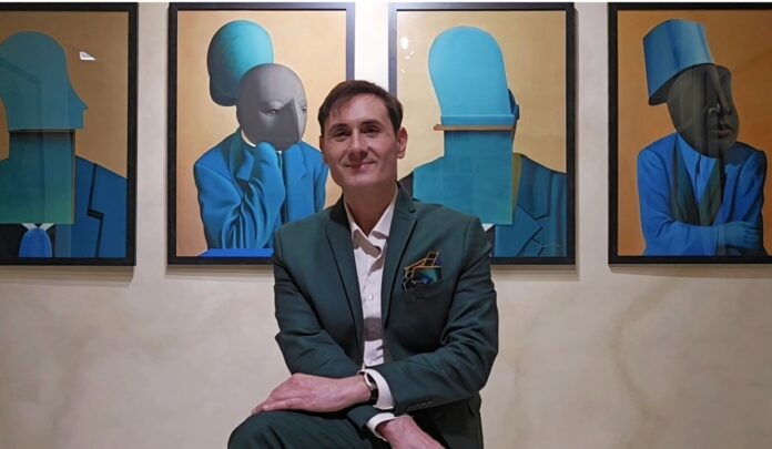Τα έργα της “Human Conditιων”, αφορούν τον άνθρωπο ως ύπαρξη μέσα στο χωροχρόνο. θα τολμούσα να πω, ότι κατ’ ουσίαν είναι πορτρέτα του ίδιου του χρόνου, ο οποίος ως κάτι άυλο, χρησιμοποιεί το χώρο και την ανθρώπινη φιγούρα για να μορφοποιηθεί. Αν παρατηρήσετε, οι ανθρώπινες μορφές στα έργα έχουν κάτι το παράδοξο, η ανατομία τους είναι αφύσικη, το περιβάλλον, που τις περικλείει έχει κάτι το υπόκωφο και το ελαστικό. Τα έργα, τα δημιούργησα την εποχή της καραντίνας και φέρουν τη ζοφερή και δυσοίωνη αίσθηση εκείνης της εποχής, ενώ οι άνθρωποι ή μάλλον οι υπάρξεις, που απεικονίζονται σε αυτά, μοιάζουν να βρίσκονται σε έναν ατέρμονο διάλογο με τον εαυτό τους. Η παρουσία του χρόνου είναι παντού αισθητή, παρεισφρύει μέσα στο χώρο αλλάζοντας την αρχιτεκτονική του, συχνά με βία, οι ανθρώπινες μορφές, άλλοτε γίνονται ένα με το περιβάλλον τους και άλλοτε βουλιάζουν μέσα στο ίδιο τους το σώμα, σε μία πάλη με τους φόβους, τους πόθους τους και την απέλπιδα πραγματικότητα. Η προσέγγιση μου έγινε μέσα από δύο διαφορετικά αισθητικά ύφη, το “φετιχιστικό” και το “λατρευτικό”.