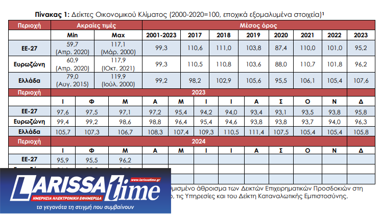 Παράλληλα όμως, και ο δείκτης καταναλωτικής εμπιστοσύνης ενισχύεται και διαμορφώνεται στο επίπεδο του Οκτωβρίου του προηγούμενου έτους. Συνολικά, το οικονομικό κλίμα αποδεικνύεται ευμετάβλητο αυτή την περίοδο, αντανακλώντας και το γεγονός ότι η ελληνική οικονομία είναι σε θετική τροχιά, όμως αντιμετωπίζει σημαντικές προκλήσεις, στο εξωτερικό περιβάλλον και εγχωρίως, που επηρεάζουν σημαντικά τις επιχειρήσεις και τα νοικοκυριά.