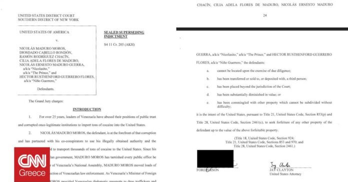 Για «ναρκοτρομοκρατική συνωμοσία» κατηγορεί η Αμερική τον πρόεδρο της Βενεζουέλας, Νικολάς Μαδούρο σύμφωνα με το πλήρες κατηγορητήριο που δημοσιεύθηκε από τις Αρχές των ΗΠΑ.