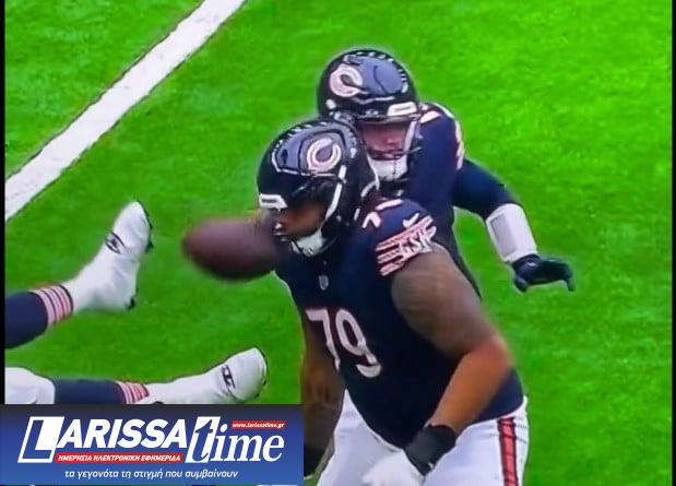 Ο quaererback των Σικάγο Μπέαρς, Κάλεμπ Γουίλιαμς, προσπάθησε να εκδηλώσει επίθεση για λογαριασμό της ομάδας του, όταν η πάσα που αποπειράθηκε να δώσει βρήκε τελικά στο… πρόσωπο του συμπαίκτη του, που φοράει το νούμερο 79, του Ματ Πράιορ.