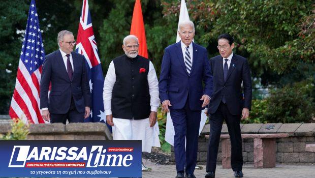 Οι ηγέτες των ΗΠΑ, της Αυστραλίας, της Ινδίας και της Ιαπωνίας εξέφρασαν «σοβαρή ανησυχία» για τις εντάσεις στη Νότια Σινική Θάλασσα και στην Ανατολική Σινική Θάλασσα, αποφεύγοντας να αναφερθούν ρητώς στην Κίνα, την οποία πάντως φωτογράφισαν, στην ανακοίνωσή τους μετά τη σύνοδό τους χθες Σάββατο.