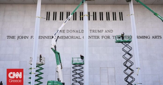 Νέα πινακίδα τοποθετήθηκε την Παρασκευή στο Κέντρο Παραστατικών Τεχνών «Τζον Φ. Κένεντι» στην πρωτεύουσα των ΗΠΑ, η οποία πλέον περιλαμβάνει και το όνομα του Ντόναλντ Τραμπ.