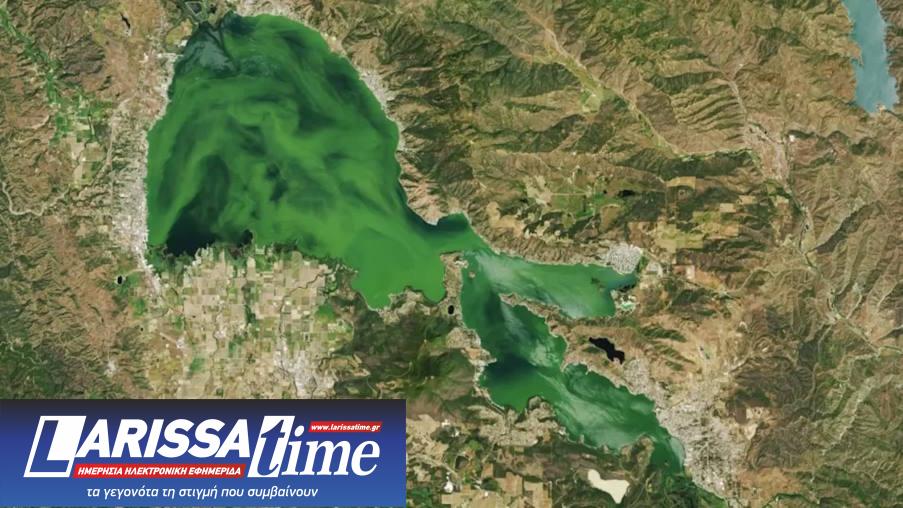 Η μεγαλύτερη λίμνη γλυκού νερού στην Καλιφόρνια έχει μετατραπεί σε έντονο πράσινο λόγω μιας έντονης άνθισης φυκιών, ορατής ακόμη και από το διάστημα, όπως αναφέρει η NASA.